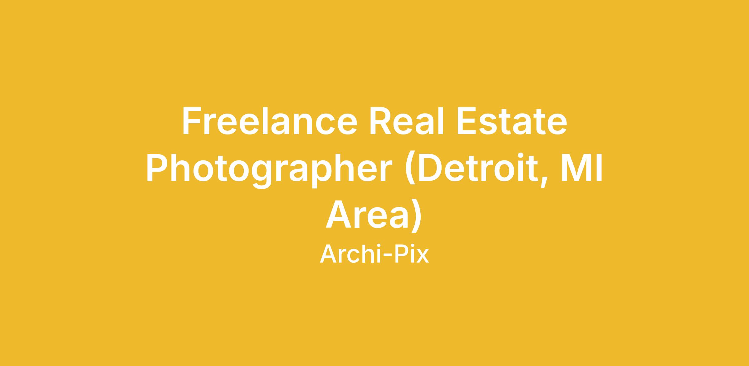 Archi-pix is a real estate media company and we are looking to expand our team of contracted part-time photographers in the Detroit, MI area. Flexible schedule and great pay for motivated individuals. No photo editing required! If you are looking for a position as a professional photographer, this could be the job for you. No need to have previous real estate photography experience. Photographers are paid by the shoot. Typical pay range is $60 - $200 per shoot (depends on photography package ordered by client and can be higher than $200 at times) and each appointment typically takes an hour or less. Photographers may have as many as 4-5 appointments per day. Photographer Requirements: