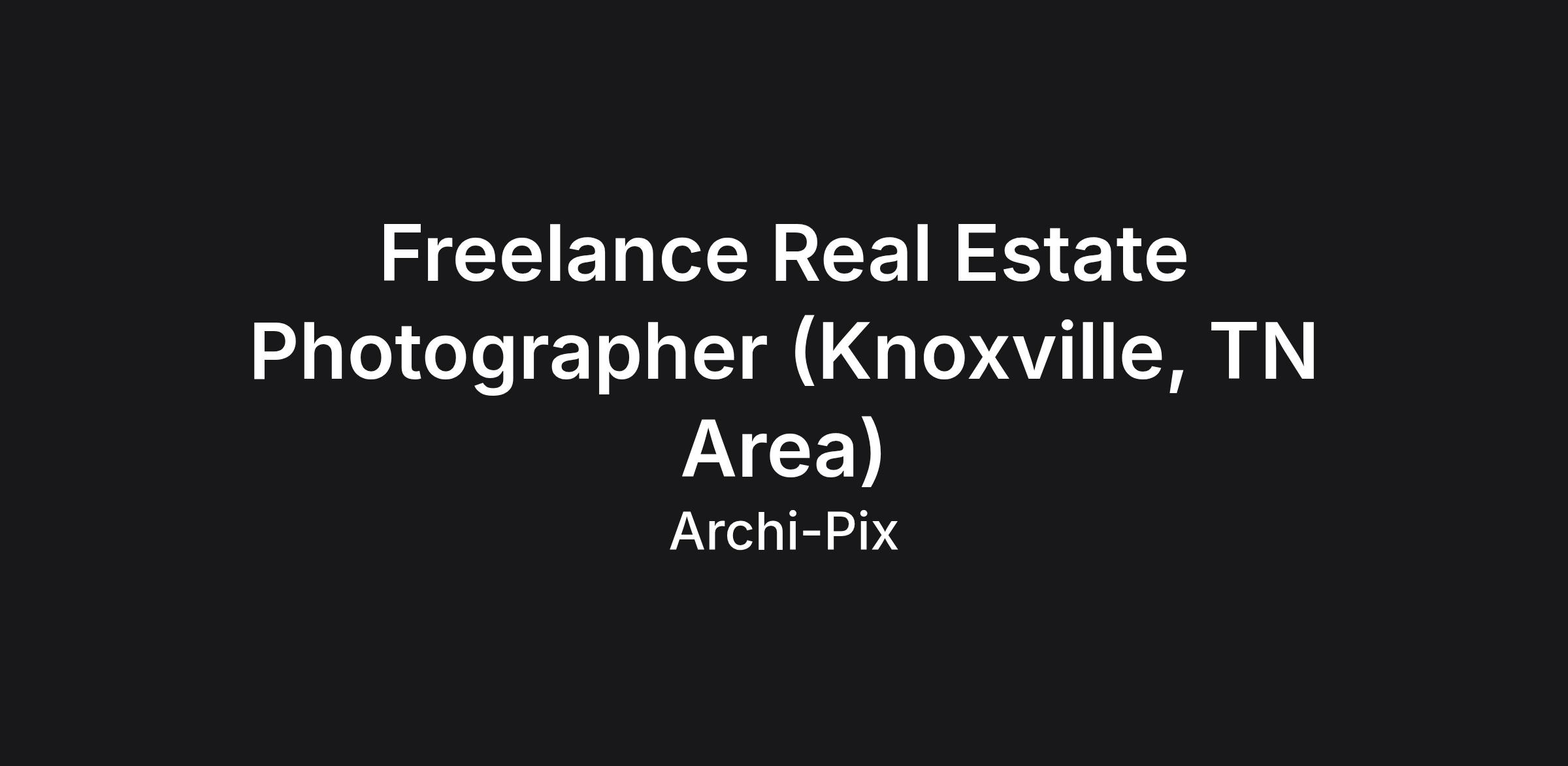 Archi-pix is a real estate media company and we are looking to expand our team of contracted part-time photographers in the Knoxville, TN area. Flexible schedule and great pay for motivated individuals. No photo editing required! If you are looking for a position as a professional photographer, this could be the job for you. No need to have previous real estate photography experience. Photographers are paid by the shoot. Typical pay range is $60 - $200 per shoot (depends on photography package ordered by client and can be higher than $200 at times) and each appointment typically takes an hour or less. Photographers may have as many as 4-5 appointments per day. Photographer Requirements: