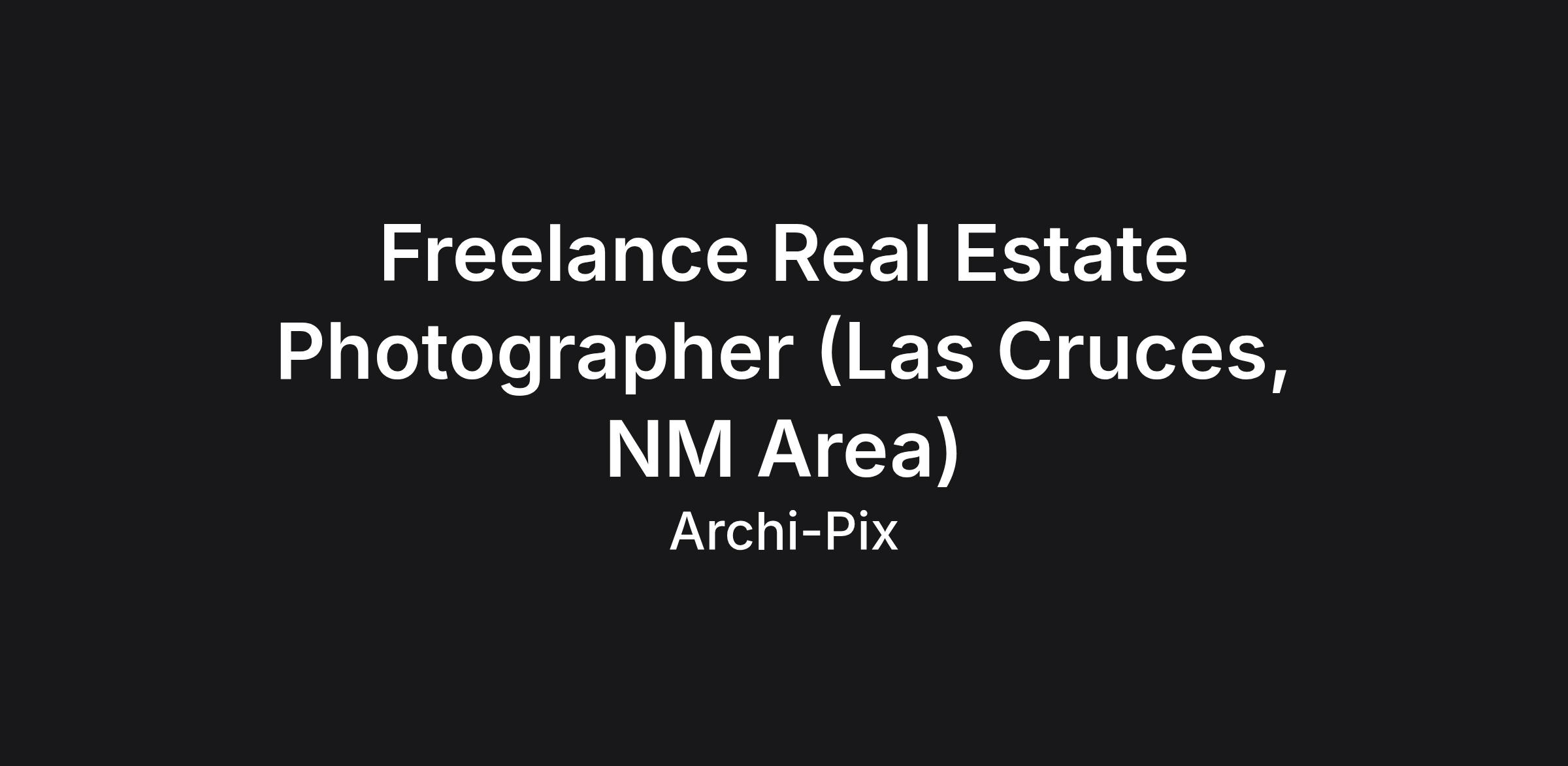 Archi-pix is a real estate media company and we are looking to expand our team of contracted part-time photographers in the Las Cruces, NM area. Flexible schedule and great pay for motivated individuals. No photo editing required! If you are looking for a position as a professional photographer, this could be the job for you. No need to have previous real estate photography experience. Photographers are paid by the shoot. Typical pay range is $60 - $200 per shoot (depends on photography package ordered by client and can be higher than $200 at times) and each appointment typically takes an hour or less. Photographers may have as many as 4-5 appointments per day. Photographer Requirements: