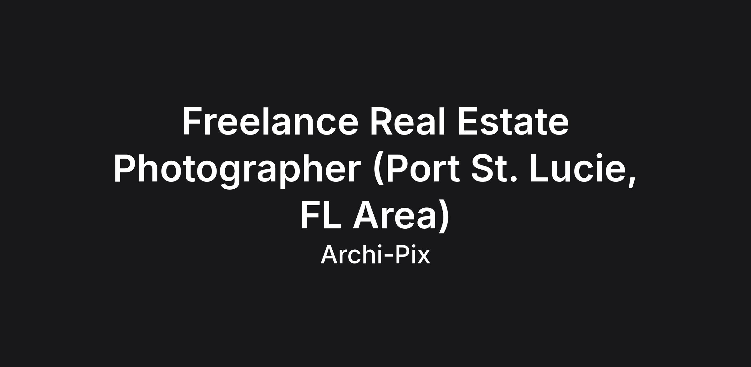 Archi-pix is a real estate media company and we are looking to expand our team of contracted part-time photographers in the Port St. Lucie, FL area. Flexible schedule and great pay for motivated individuals. No photo editing required! If you are looking for a position as a professional photographer, this could be the job for you. No need to have previous real estate photography experience. Photographers are paid by the shoot. Typical pay range is $60 - $200 per shoot (depends on photography package ordered by client and can be higher than $200 at times) and each appointment typically takes an hour or less. Photographers may have as many as 4-5 appointments per day. Photographer Requirements:
