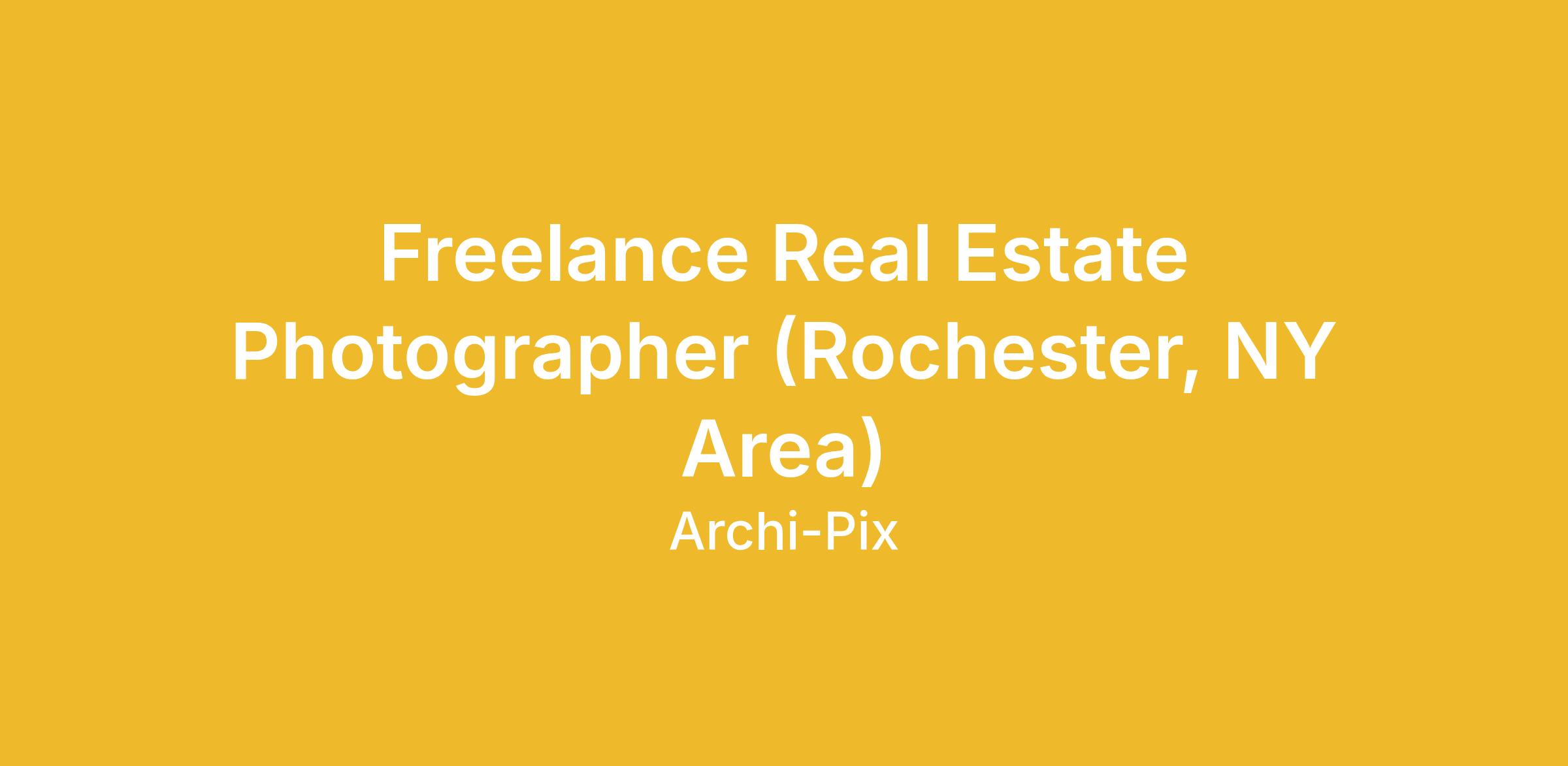 Archi-pix is a real estate media company and we are looking to expand our team of contracted part-time photographers in the Rochester, NY area. Flexible schedule and great pay for motivated individuals. No photo editing required! If you are looking for a position as a professional photographer, this could be the job for you. No need to have previous real estate photography experience. Photographers are paid by the shoot. Typical pay range is $60 - $200 per shoot (depends on photography package ordered by client and can be higher than $200 at times) and each appointment typically takes an hour or less. Photographers may have as many as 4-5 appointments per day. Photographer Requirements:
