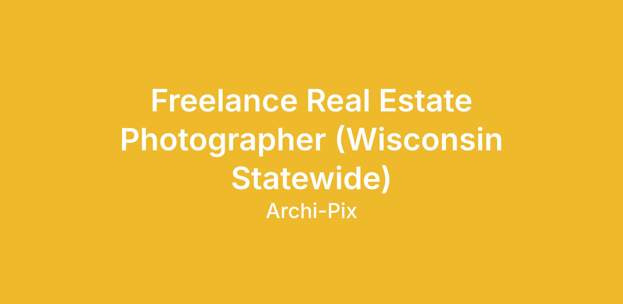 Archi-pix is a real estate media company and we are looking to expand our team of contracted part-time photographers in the state of Wisconsin. Flexible schedule and great pay for motivated individuals. No photo editing required! If you are looking for a position as a professional photographer, this could be the job for you. No need to have previous real estate photography experience. Photographers are paid by the shoot. Typical pay range is $60 - $200 per shoot (depends on photography package ordered by client and can be higher than $200 at times) and each appointment typically takes an hour or less. Photographers may have as many as 4-5 appointments per day. Photographer Requirements: