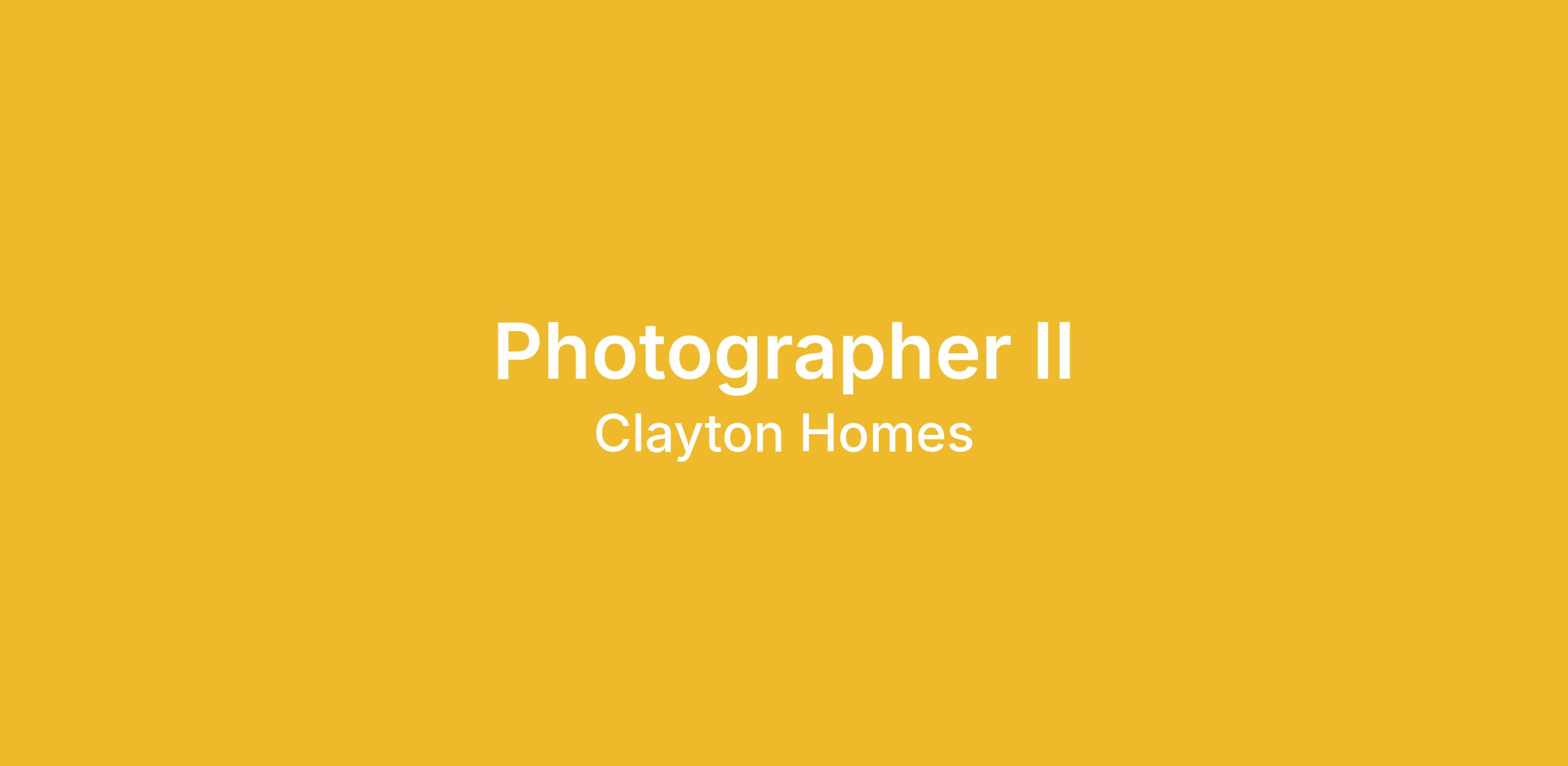 Clayton’s in-house Photography Team provides all areas of the business with commercial and creative photography, developing content for our social channels, website, and print, and is highly involved from concept to delivery of photography for social and headline creative campaigns. The Photographer II is a self-motivated, collaborative role responsible for the production of various types of projects and the project management required to accomplish the tasks involved. This role actively leads photo shoots, manages communications, travels extensively, is able to provide complex photo editing, and interacts with leadership, stakeholders and customers regularly. Using artistic and technical skills, the Photographer II creates high-quality images of home exterior and interiors, people, commercial/lifestyle, events, and other products while maintaining Clayton’s brand guidelines. This team member is involved in creating sustainable systems, maintaining current processes and is responsible for the back end of the photography department (organization, archiving, metadata). The Photographer II works with the Photography Team Lead and other photographers to determine the best execution, post-processing, retouching, package, presentation, and handoff of photos.