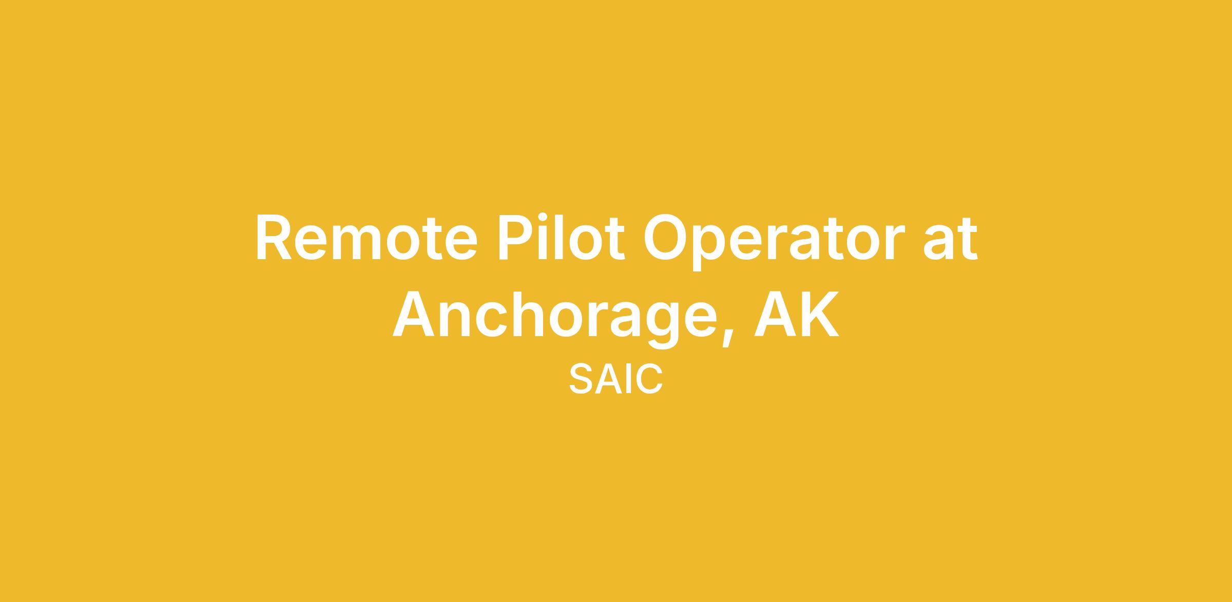 We are looking for Full time, Remote Pilot Operator (RPO) candidates to join the SAIC Controller Training Solutions (CTS) team at the Anchorage Approach Control (A11), located in Anchorage, AK, supporting air traffic controller training services for the Federal Aviation Administration (FAA).