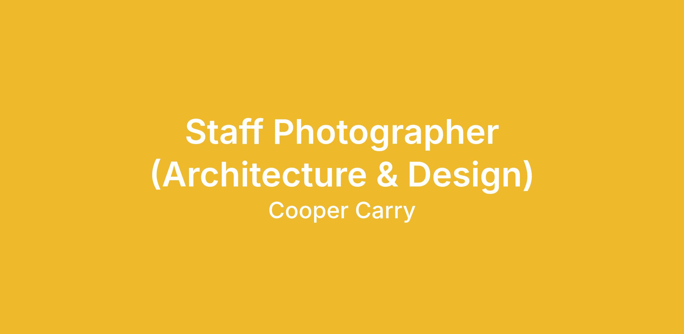 Cooper Carry is seeking a fullâtime, inâhouse Staff Photographer to serve as a centralized creative resource supporting our architecture, interior design, and planning practices across all studios and service lines. This role is responsible for producing highâquality, brandâaligned photography of the firm’s built work and design process for use in marketing, business development, awards, public relations, and various digital platforms.